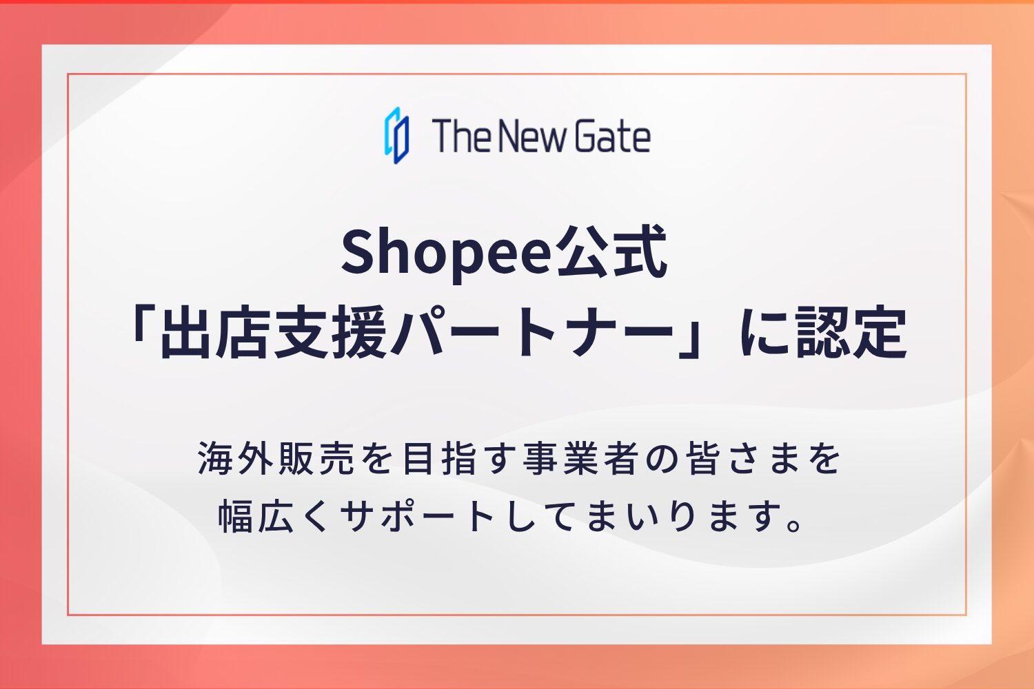 株式会社TheNewGate(本社:群馬県高崎市、代表取締役社長:松下 宇流麻)は、東南アジア最大級のECプラットフォーム「Shopee(ショッピー)」の公式出店支援パートナーとして認定されたことをお知らせいたします。