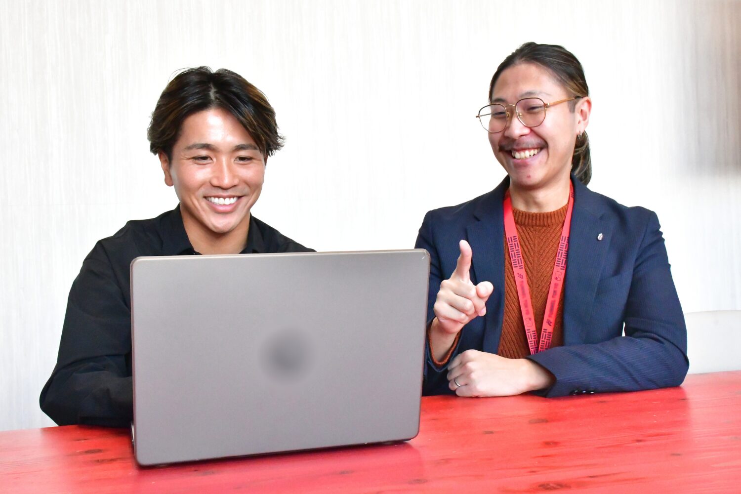 〈 宮澤選手(左)と 代表取締役社長 松下 宇流麻(右)〉